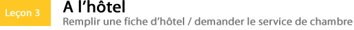 | coréen | romanisation | français | | 호 텔 | [hotel] | l’hôtel | | 체크인 | [chekeuin] | remplir une fiche d’hôtel | | 체크아웃 | [chekeuaut] | libérer la chambre | | 비 용 | [biyong] | le coût | | 숙박비 | [sukbakbi] | le prix de la chambre d’hôtel | | 프런트 | [peureonteu] | la réception | | 객 실 | [gaeksil] | la chambre d’hôtel | | 싱글/더블 침대 | [singeul/deobeul chimdae] | le lit simple / double | | 온돌방 | [ondolbang] | la chambre à parquet chauffant |