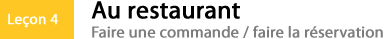 | coréen | romanisation | français | | 식 당 | [sikdang] | le restaurant | | 메 뉴 | [menyu] | le menu | | 맛있다 | [masitda] | être délicieux | | 맛없다 | [madeopda] | ne pas être bon | | 맵 다 | [maepda] | être piquant | | 짜 다 | [jjada] | être salé | | 시키다 | [sikida] | commander | | 그 릇 | [geureut] | le bol, le récipient | | 후 식 | [husik] | le dessert |