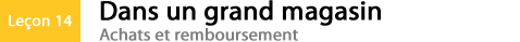 | coréen | romanisation | français | | 백화점 | [baekhwajeom] | le grand magasin | | 점원 | [jeomwon] | le vendeur | | 손님 | [sonnim] | le client | | 탈의실 | [taruisil] | la cabine d’essayage | | 매장 | [maejang] | le magasin | | 현금 | [hyeongeum] | l’argent comptant (les espèces) | | 사다 | [sada] | acheter | | 팔다 | [palda] | vendre | | 세일하다 | [seilhada] | solder | | 고르다 | [goreuda] | choisir | | 결제하다 | [gyeoljehada] | payer |